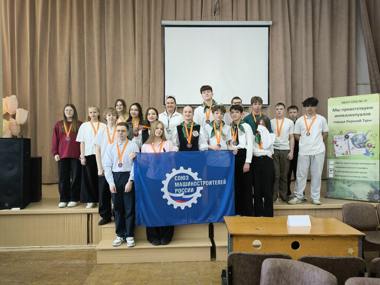 За право называться лучшими боролись 12 команд юных изобретателей из Верхней Туры и Красноуральска. Наш город на турнире представляли Ксения Ларионова, Тимофей Ложкин, Полина Колмогорова, Ефим Мызников и Макар Кошелев. В соответствии с регламентом конкурса командам 8–9 классов было необходимо за 1,5 часа создать механизм для полива цветка по принципу «машины Голдберга». В его основе лежит сосуд, который должен был опрокинуться под действием физической силы. Кстати, жюри оценивало не только работоспособность и надежность, но и завершенность и внешний вид конструкции. И ребята с этим заданием отлично справились, за что и были отмечены также особой наградой – памятными медалями – от завода АО «ВТМЗ».