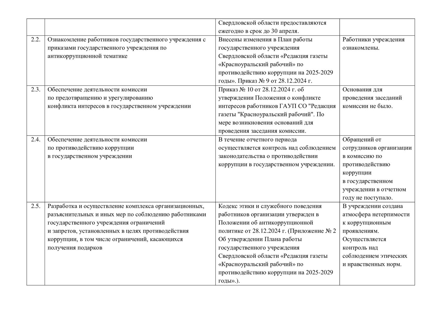Отчеты о реализации плана мероприятий по противодействию коррупции
